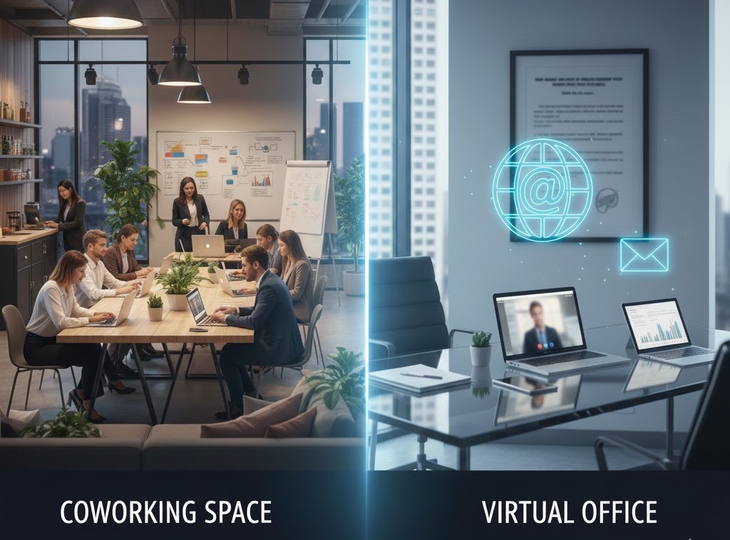- Amenities and Services: Coworking includes Wi-Fi, printers, and lounges; virtual emphasizes mail and calls.